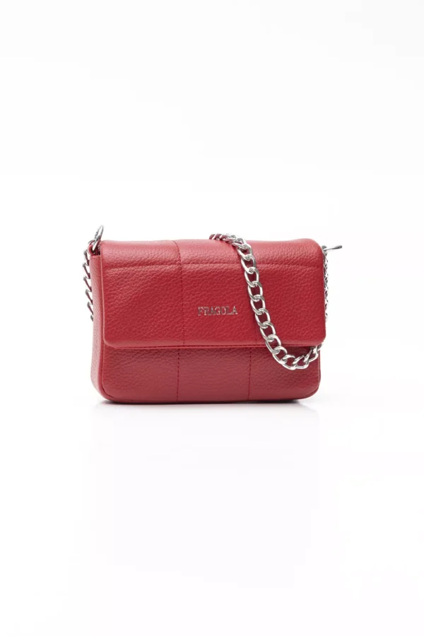 Travel bag with lid and chain suitable for all ages. It closes with a lid in which there are two magnetic buttons. Inside there is a zippered pocket at the back. It has an extra long arm to convert into a crossbody. Material: soft embossed ecological leather.