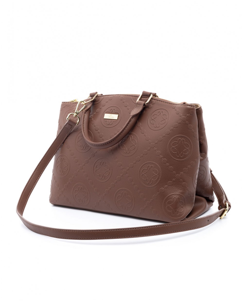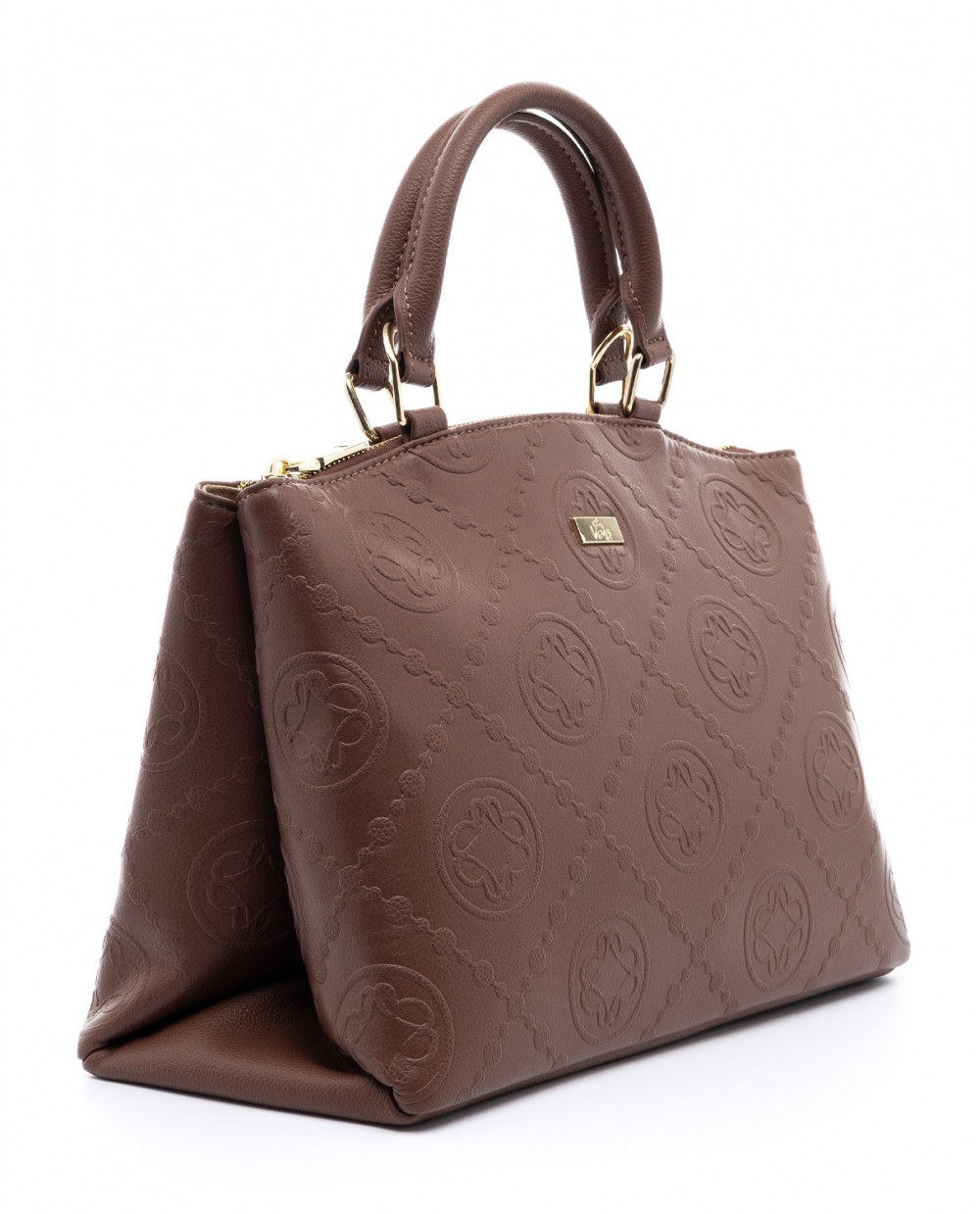 Veta γυναικεία τσάντα ώμου χειρός καφέ με ανάγλυφο μοτίβο