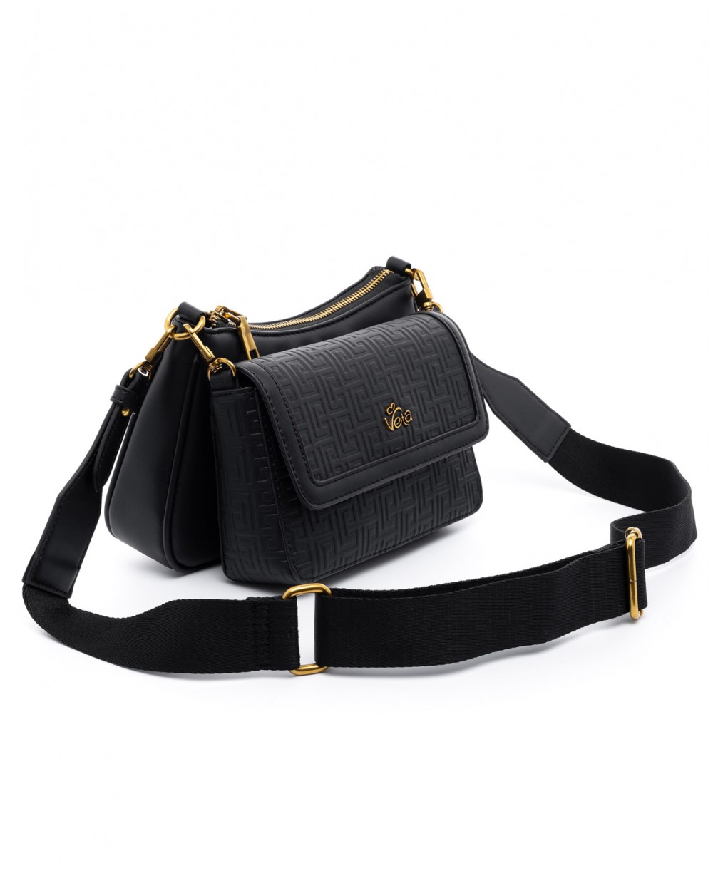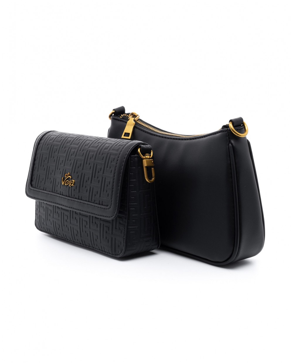 Χρώμα: Μαύρο Υλικό: Οικολογικό δέρμα Κλείνει με φερμουάρ και μαγνητικό κούμπωμα Ιμάντας σε μαύρο Περιλαμβάνεται προστατευτική θήκη ΕΣΩΤΕΡΙΚΟ Τσαντάκι το οποίο κλείνει με φερμουάρ 1 χώρος 1 τσέπη με φερμουάρ 1 ανοιχτή τσέπη Τσαντάκι το οποίο κλείνει με καπάκι 1 χώρος 1 τσέπη με φερμουάρ ΕΞΩΤΕΡΙΚΟ Μεταλλικά στοιχεία σε vintage gold Διαστάσεις: Μ.: 24.5εκ./ Π.:5.5εκ./ Υ.: 15εκ. Διαστάσεις: Μ.: 20εκ./ Π.:5.5εκ./ Υ.: 13εκ.