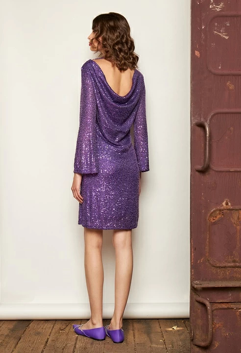 Short dress with sequins, long sleeves, back detail, lined inside, regular fit.