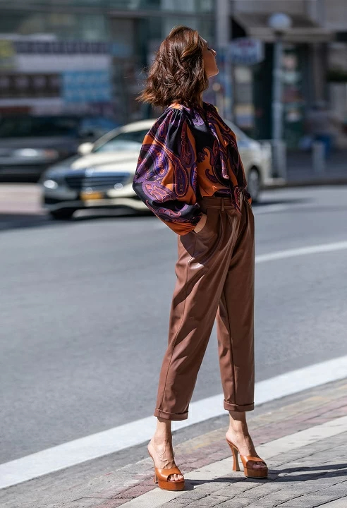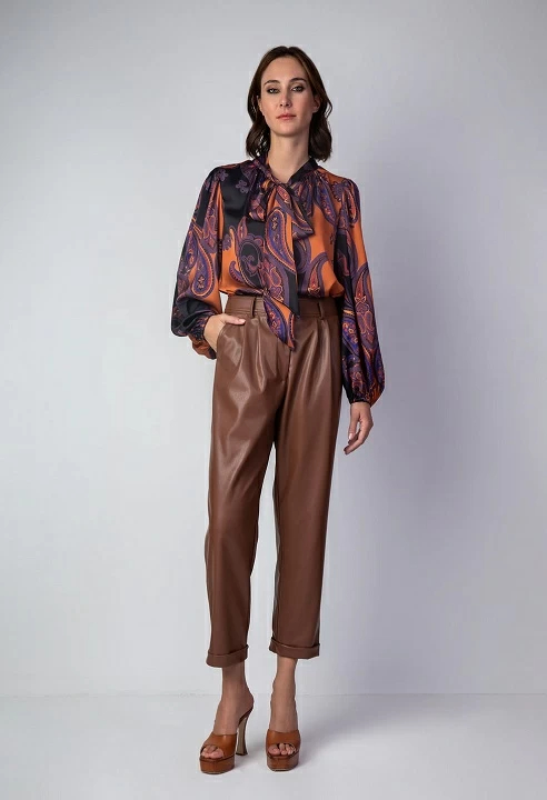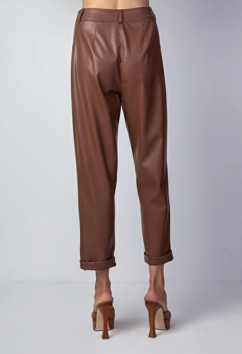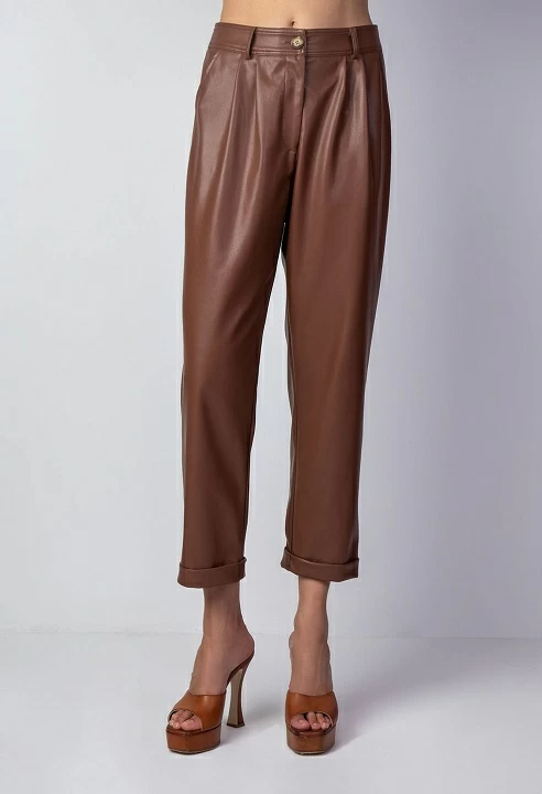 Trousers with front pleats, side pockets, lapel hem, front zip and button closure, regular fit.