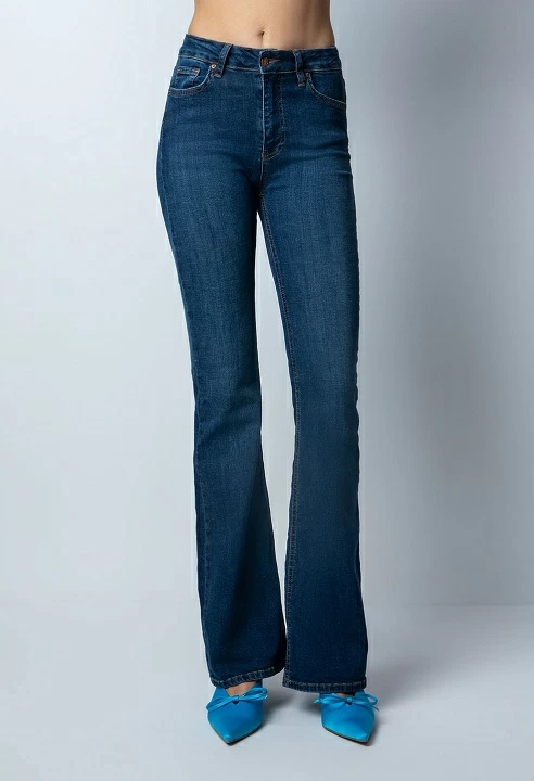 5-pocket high-waisted jeans with wide-leg bottoms, front zip and metal button closure, regular fit.