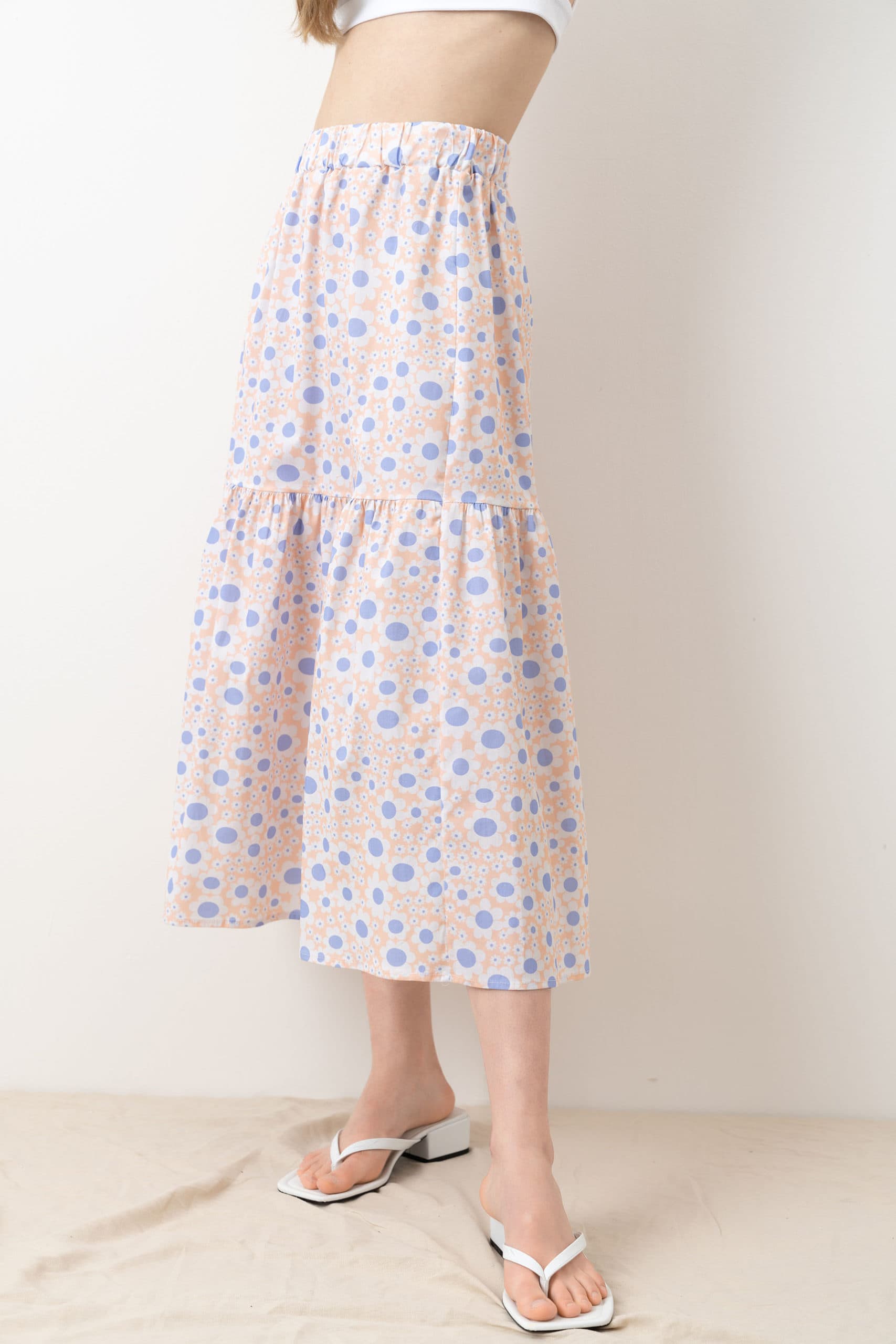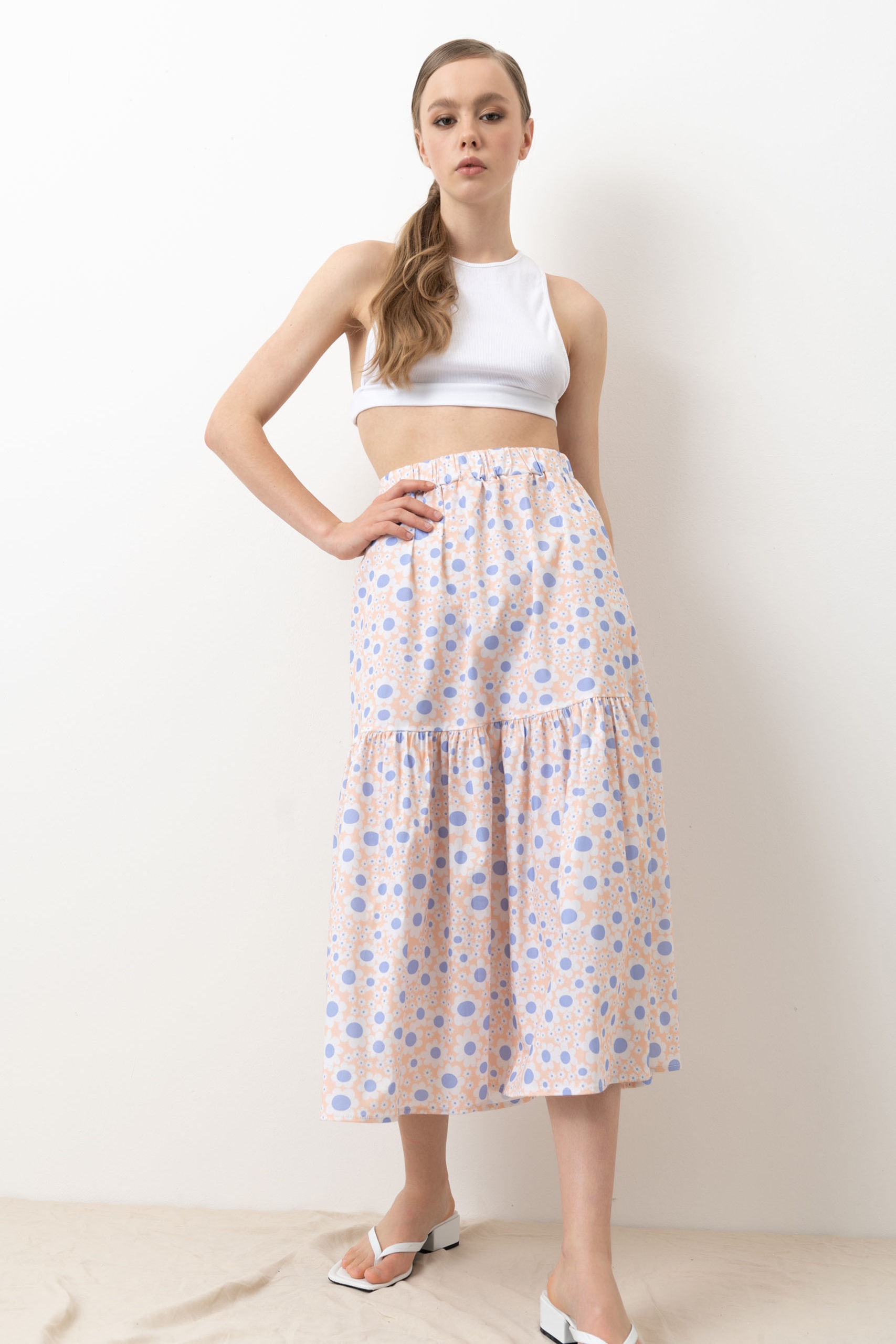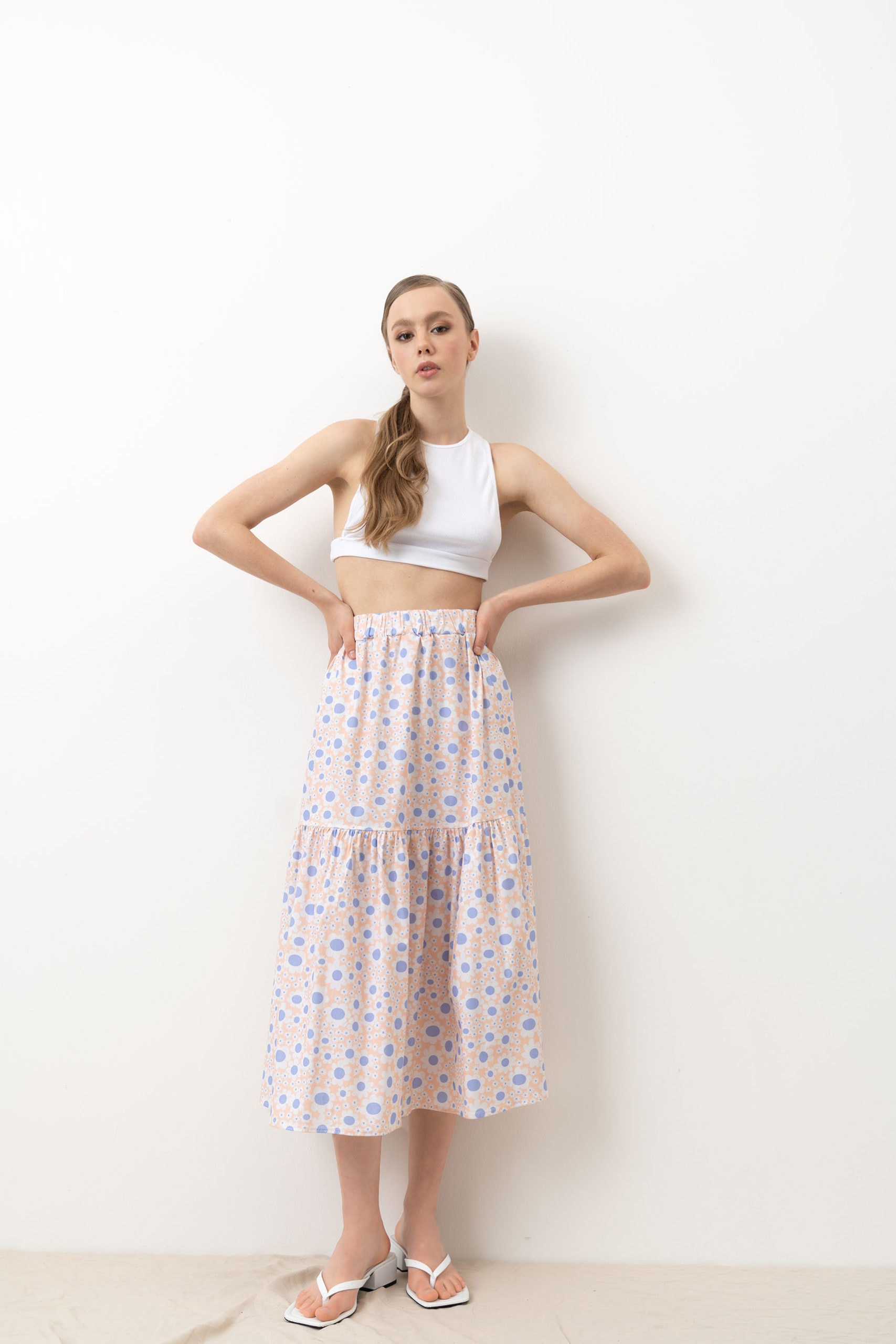Women's cotton midi skirt with floral print. One size (covers up to large)