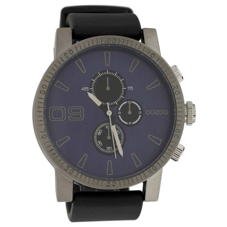 Ρολόι OOZOO με δέσιμο από καουτσούκ . Αυτό το ανδρικό ρολόι έχει μπλε καντράν από ορυκτός κρύσταλλος και μαύρο πλαίσιο.