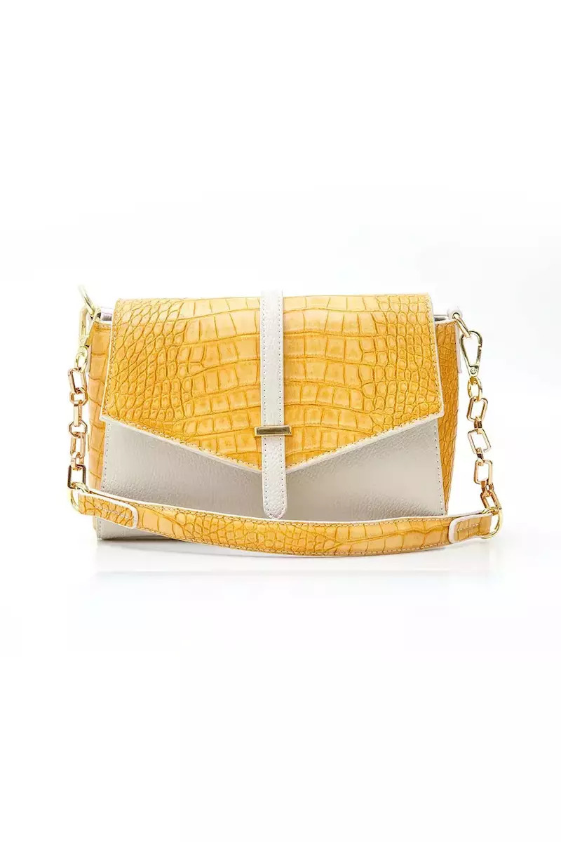 Γυναικεία τσάντα της εταιρείας Fragola κατασκευασμένη από δερματίνη σε κίτρινο χρώμα. Το κύριο μέρος της τσάντας κλείνει με μαγνητικό κούμπωμα.