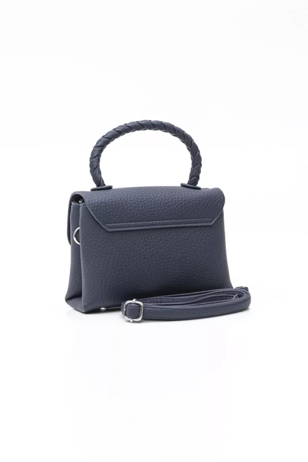 Μικρή τσάντα με καπάκι και κοντό πλεκτό χέρι. Δυο διαφορετικές τελείως διαχωρισμένες θέσεις που η καθεμία κλείνει με φερμουάρ για απόλυτη ασφάλεια. Το καπάκι κλείνει με μαγνητικό button με μεγάλη τετράγωνη φιγούρα ντυμένη με το υλικό της τσάντας. Διαθέτει και δεύτερο μακρύ αυξομειούμενο χέρι ωστε να τo μετατρέψετε σε χιαστί τσαντάκι. Υλικό: Μαλακό ανάγλυφο οικολογικό δέρμα.